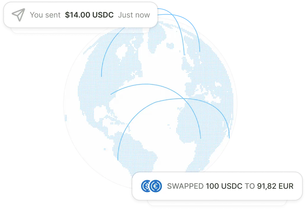 Move money anywhere in the world, instantly, at a fraction of the cost. Deliver funds in stablecoins or in fiat, using stablecoins as an invisible intermediary step.