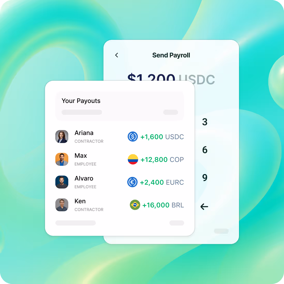Enable employees to hold and spend stablecoins anywhere in the world.